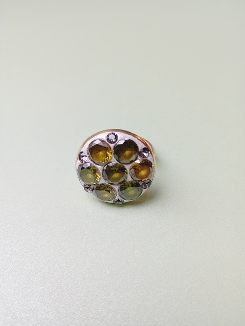 - Material/Conținut peridot, inel placat cu aur 18k, ceralun, swarovski black diamond