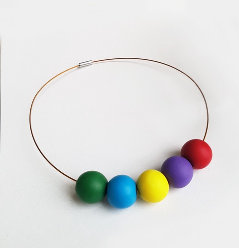 Colier margele rotunde mari, colier colorat, colier statement, colier geometric