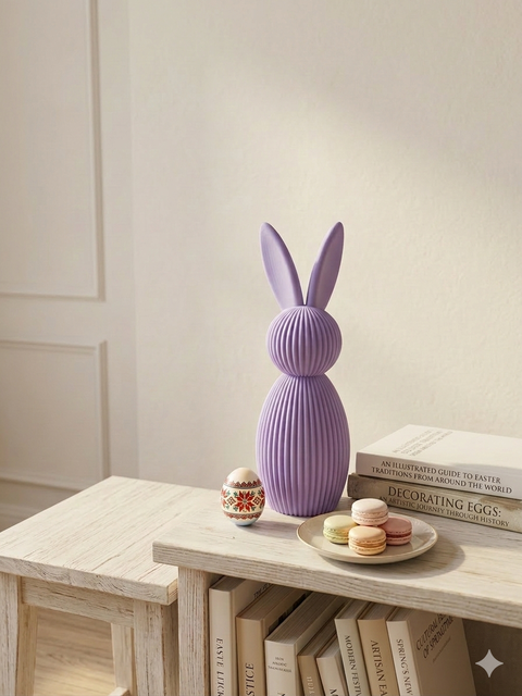 Figurina decorativa iepuras, print 3D, mov, design modern texturat, decor Paste, stil minimalist, ornament casa living
