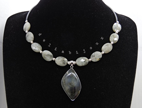 Colier elegant cu labradorit fatetat si pandantiv labradorit (cod1416)
