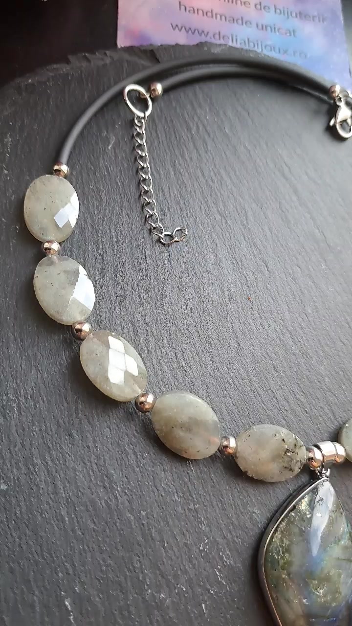 - Material/Conținut inox, otel inoxidabil, pietre semipretioase, cristale, labradorit, pandantiv, pandant labradorit, tub cauciuc, labradorit fatetat