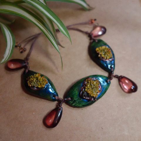 - Material/Conținut mărgele sticlă, ață cerată, pastă modelaj cu uscare la aer, licheni naturali, rășină fotopolimerizabilă