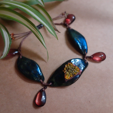 - Material/Conținut mărgele sticlă, ață cerată, pastă modelaj cu uscare la aer, licheni naturali, rășină fotopolimerizabilă