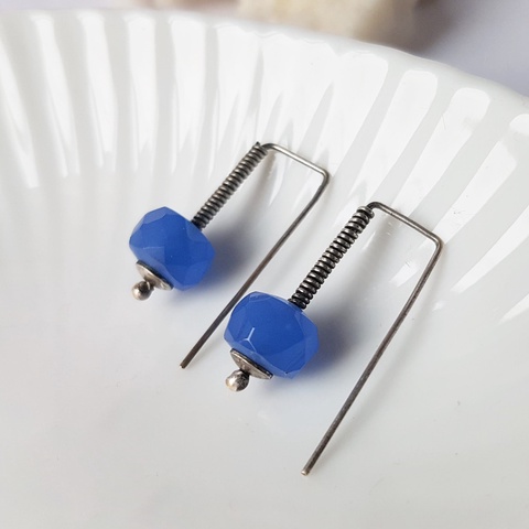 Cercei pietre naturale albastre cercei calcedonie cercei argint cercei albastri atarnatori cercei moderni minimalisti