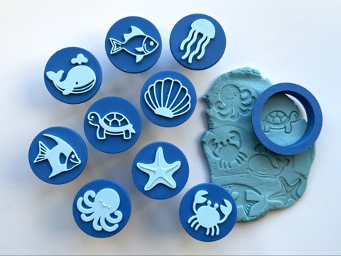 Set de ștampile și forme de prăjituri „Animale marine” din plastilină – balenă, caracatiță