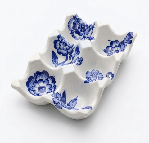 Suport de ouă model flori albastre, decor pentru masa de Paște