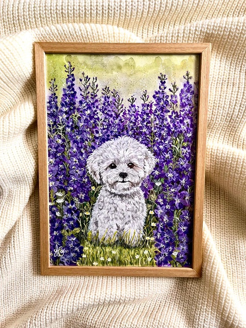 Tablou pictură Popas în lanul de Delphinium-Bichon/ Fundal Floral Delphinium-Lakspur