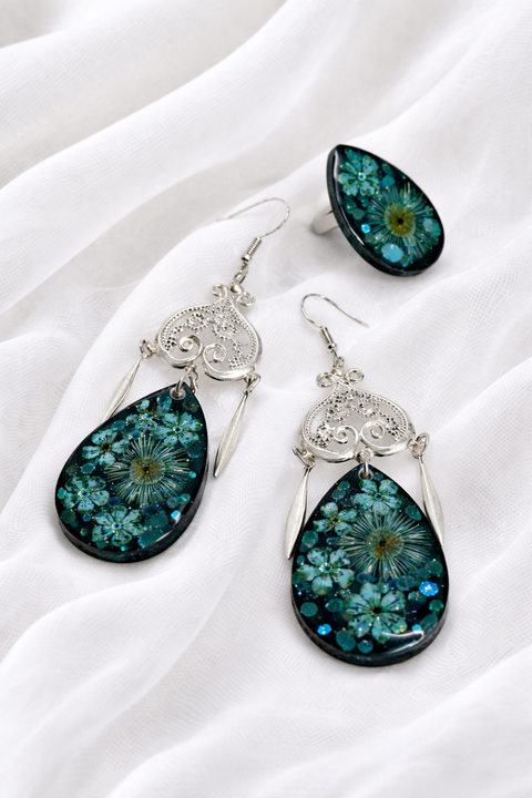 - Material/Conținut flori naturale, gliter, inox, rășină