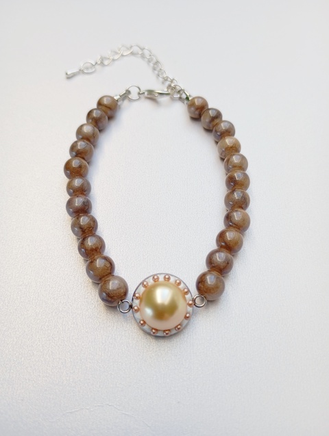 Bratara cu perle Swarovski si pietre Calcedonie 6mm