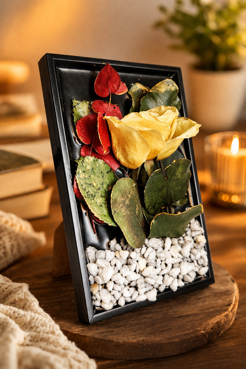 Tablou decorativ 10x15 cu trandafiri si eucalipt decor natural handmade cadou special