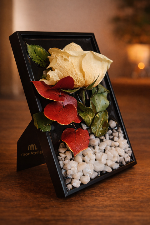 Tablou decorativ mic 10x15 cu plante naturale trandafiri si eucalipt cadou deosebit