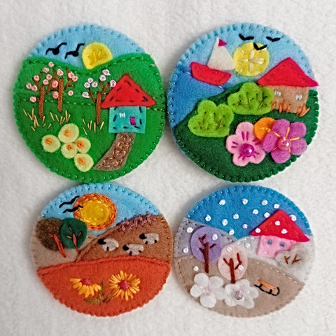 Brosa din Fetru ,Brodata cu tema Anotimpuri , Cadou Ideal .