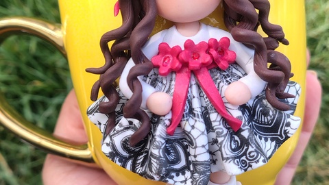 Cană fetiță cu două codițe – detaliu handmade din lut polimeric