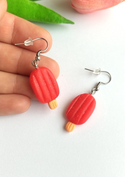 Cercei handmade înghețată pe băț din lut polimeric – inox hipoalergenic, cercei amuzanți kawaii, desert