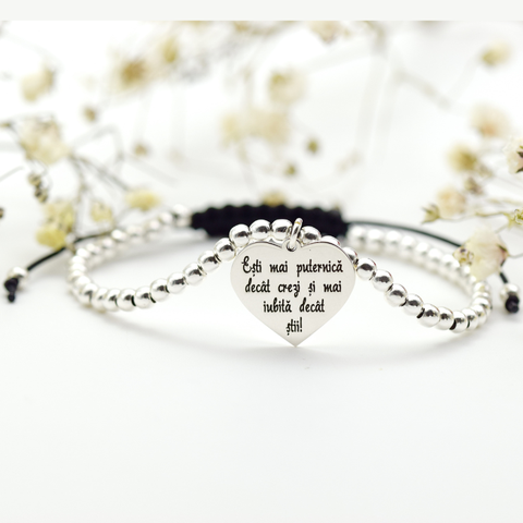 Bratara reglabila cu pandantiv inimioara personalizat Ești mai puternică decât crezi și mai iubită decât știi – Argint 9