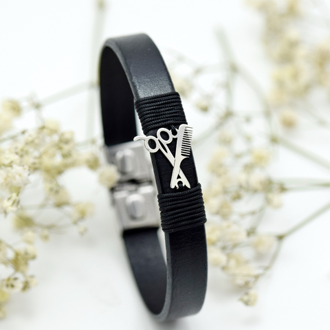 Bratara din piele naturala simbol Hairstylist – Argint 925