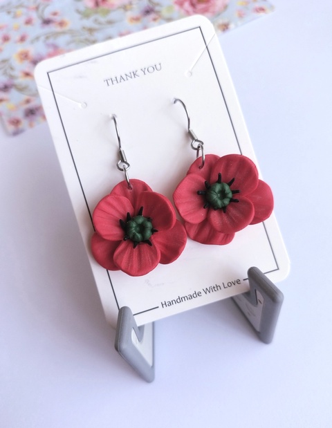 Cercei handmade cu maci din lut polimeric