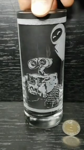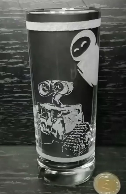 Pahar de sticlă cu modelul WALL-E și EVE