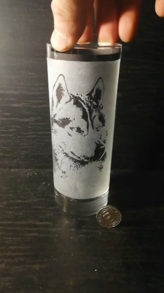 Pahar cu model Husky, gravat manual