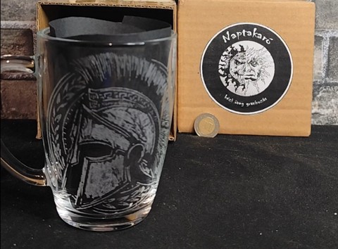 Cană de sticlă cu model de cască spartană