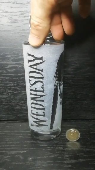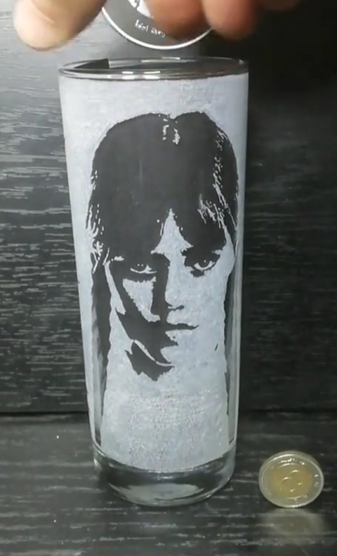 Pahar de sticlă cu model „Wednesday”, gravat manual