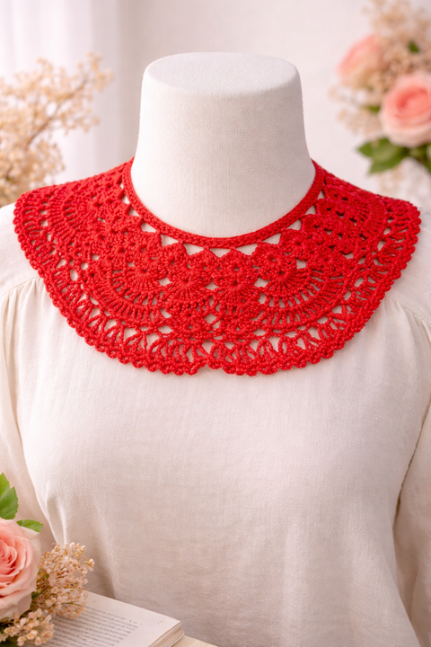 Guler decorativ croșetat manual din bumbac