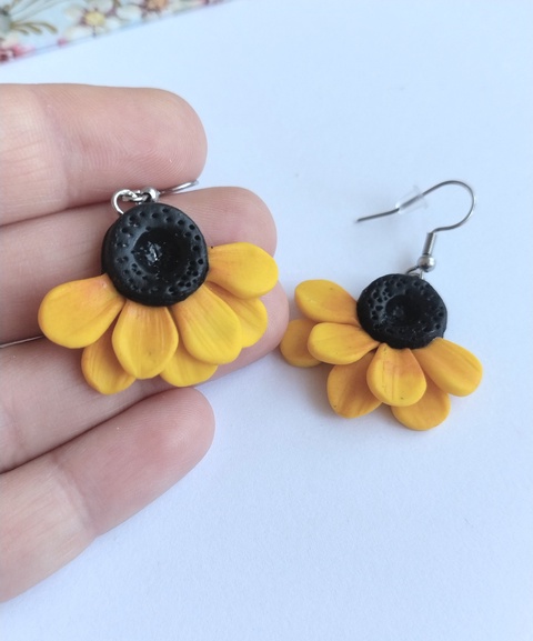 Cercei handmade floarea-soarelui din lut polimeric, design modern