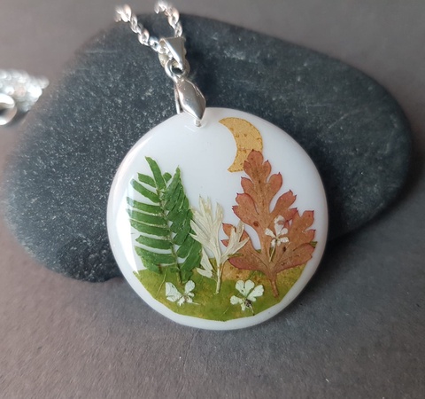 Colier handmade Pandantiv vintage rasina frunze naturale buchet flori colier flori presate cadou femeie iubita toamna