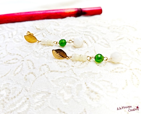 Cercei cu cuart si jad galben si verde