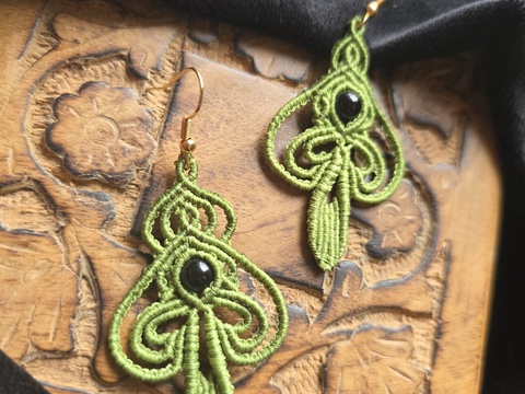 Micro macrame Leaf of Life Earrings cu Onix