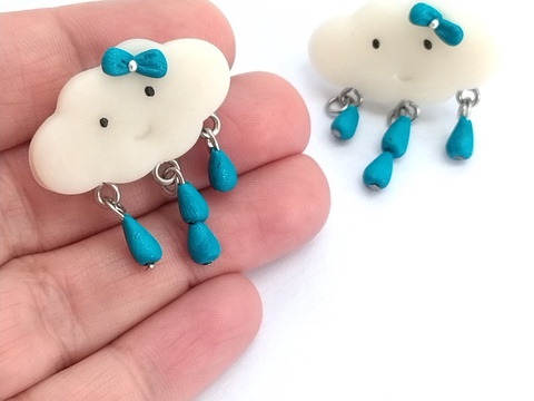 Cercei norișori verde petrol cu picături – handmade din lut polimeric, design delicat