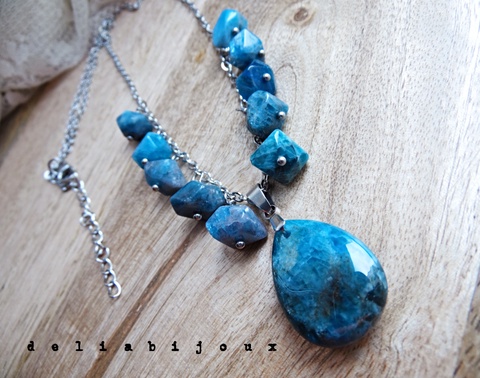Colier statement din apatit natural - piesă unicat handmade (cod1422)
