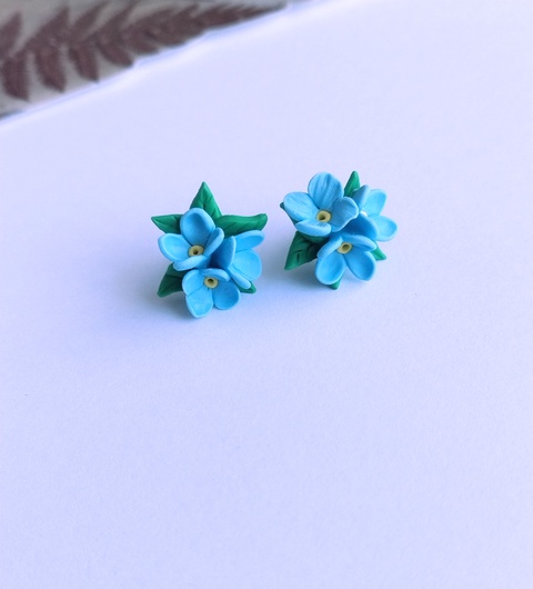 Cercei „Nu mă uita” albaștri – flori handmade din lut polimeric, model delicat