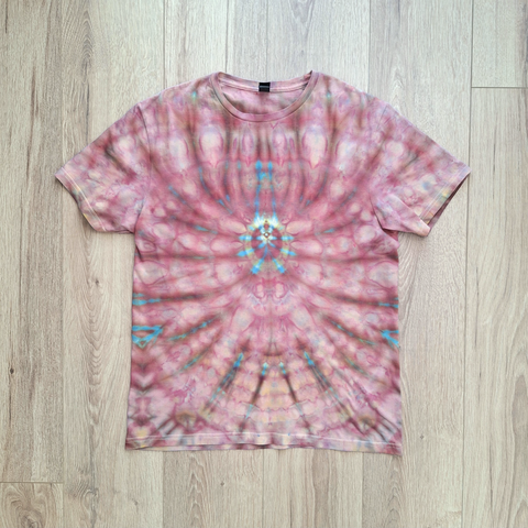Tricou unisex bumbac vopsit manual roz, turcoaz