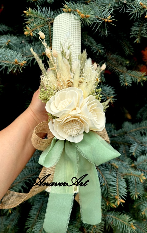 - Material/Conținut flori uscate, lumanare di ceara natarula, panglica, panglica dantela, panglica organza, plante uscate, capete heleborus