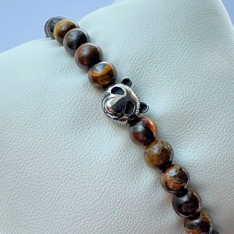 Bratara barbati din otel inoxidabil cu ochi de tigru si pandativ urs - Succes
