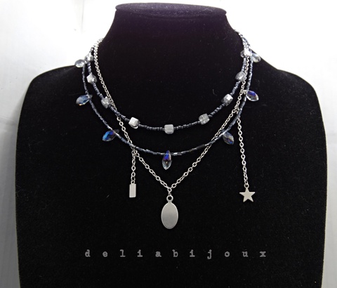 Colier multisirag cu cristale și lanț din inox statement modern minimalist (cod1424)